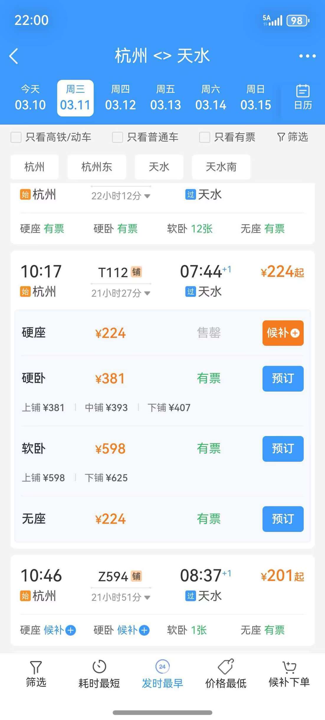 杭州 T112 天水